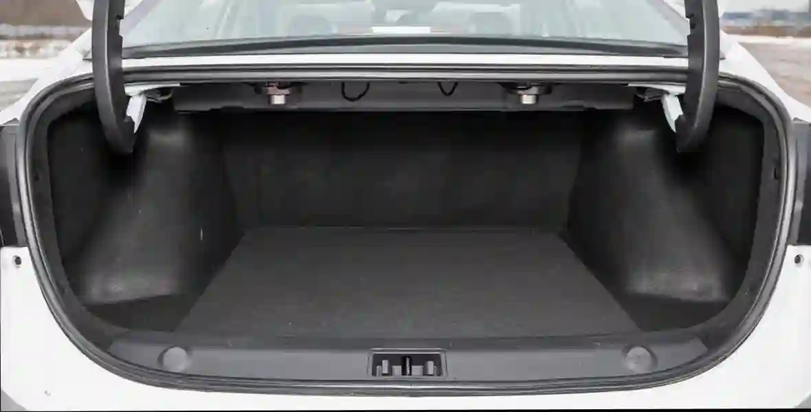Примерно та же картина в багажнике номинальным объёмом 428 литров. Пара больших чемоданов помещается без проблем, вокруг и сверху можно положить ещё что-то некрупное — но на этом всё. Ниш для мелочёвки, крючков или петель на полу не предусмотрено, нет даже внутренней ручки на крышке багажника. Её петли норовят спрессовать груз, под полкой торчат провода и катушки динамиков. А спинка дивана складывается только целиком. В общем, полное ощущение, что грузовой отсек проектировали по принципу «чтобы был». И вдруг приятный сюрприз: под полом обнаруживается запаска, аккуратно упакованная в специальный чехол на молнии. Он сильно выручит, если придётся менять колесо где-то в весеннюю слякоть.